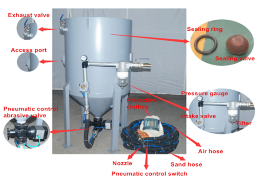 Pneumatic Industrial Sand Blast Pot Dry Type Sandblaster 500L Volume Use All Kinds Of Sand